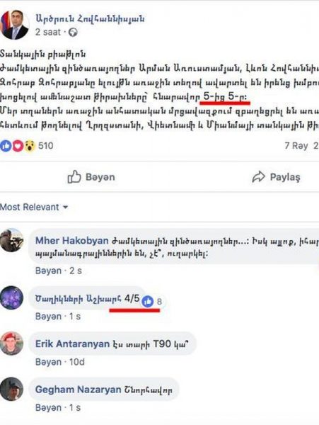 Арцрун Ованнисян, пресс-секретарь министерства обороны Армении, поспешил порадовать подписчиков на своей официальной странице в Facebook об успехах армянских танкистов на проходящих сейчас в Московской области Армейских играх-2018.