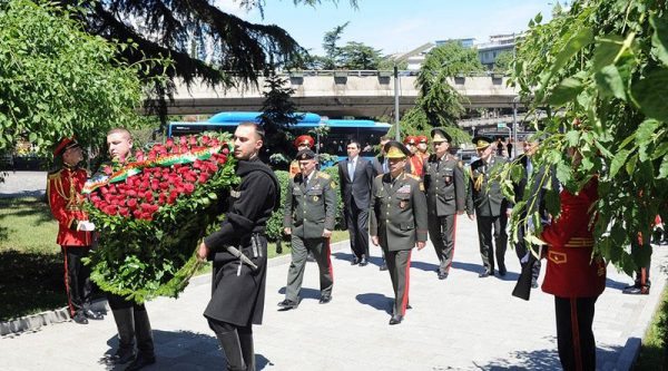 Далее азербайджанская делегация возложила венок к воздвигнутому на Площади Героев в Тбилиси монументу погибшим за независимость и территориальную целостность Грузии, почтив их память.