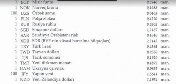 В свою очередь курс российского рубля составляет 0,0305 маната, турецкая лира – 0,4593 маната.