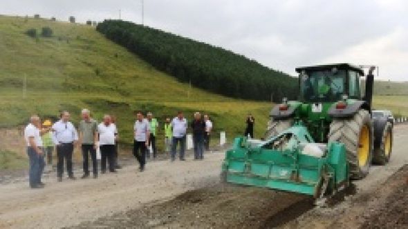 С процессом реабилитации дороги экспериментальным методом на месте ознакомились глава Минрегиона Нодар Джавахишвили и председатель департамента автомобильных дорог Георгий Сетуридзе.
