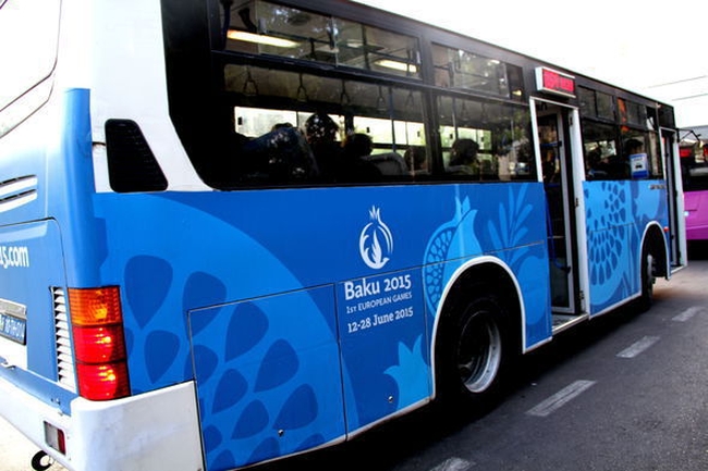 В столице Азербайджана обновили рекламные и информационные наклейки на автобусах, которые заменили на посвященные I Европейским играм «Баку-2015».