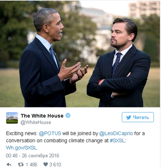 В октябре президент США Обама встретится с ДиКаприо, чтобы обсудить изменения климата.
