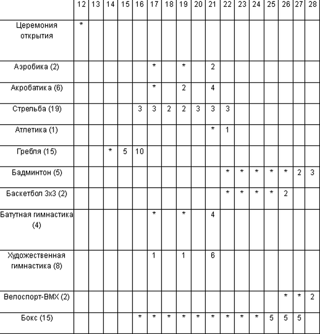 Наибольшее число – 35 комплектов медалей будет разыграно 21-го июня. В этот день будут проведены соревнования по 14 видам программы. 17-го и 19-го числа болельщики станут свидетелями борьбы в 13 видах.