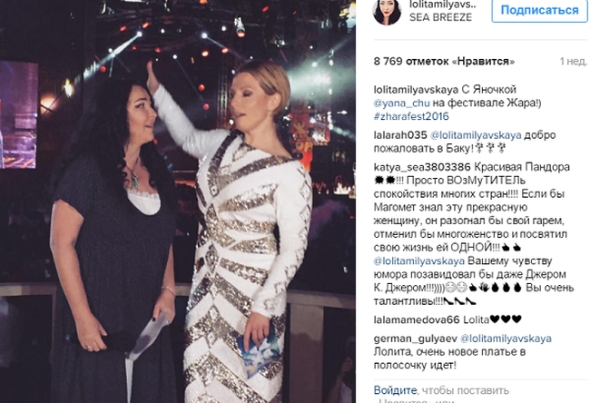 Как сообщает AZE.az, певица Лолита Милявская поведала "Москва-Баку" о музыкальном фестивале "Жара", прошедшем недавно в столице Азербайджана, об Эмине Агаларове как человеке и организаторе и о том, что в Баку привлекло особое внимание звезды российской эстрады и ее подписчиков в Instagram.