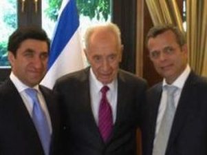Миллиардеры-уроженцы Азербайджана Год Нисанов и Зорах Илиев встретились с президентом Израиля Шимоном Пересом.