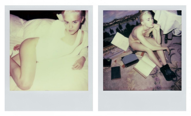 Для нового номера журнала V Magazine, посвященного музыке, певица предоставила серию личных полароидных фотографий из путешествий, снятых ее лучшим другом Чейном Томасом. Снимки были сделаны во время ее тура «Bangerz», на репетициях и в ожидании выступлений, а также в редкие дни отдыха; на некоторых из них девушка предстает практически полностью обнаженной, например в ванной или во дворе своего дома в Лос-Анджелесе.