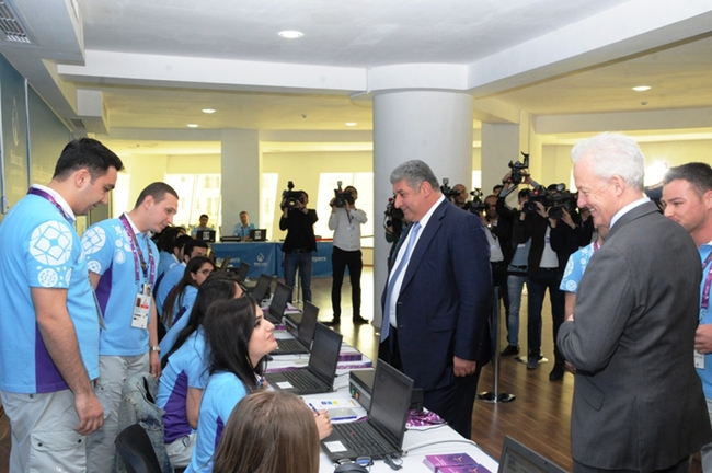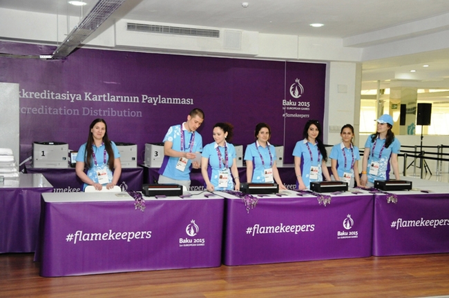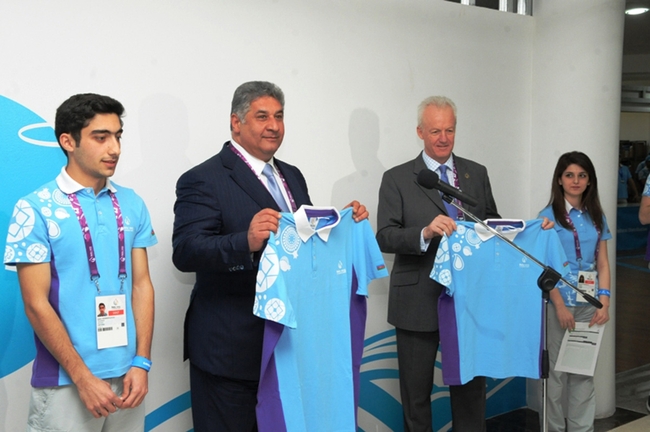 Униформу Евроигр «Баку 2015» и аккредитационные карты первыми получили министр молодежи и спорта Азербайджанской Республики, главный исполнительный директор Операционного комитета Евроигр (BEGOC) Азад Рагимов и главный директор по операциям BEGOC Саймон Клег.