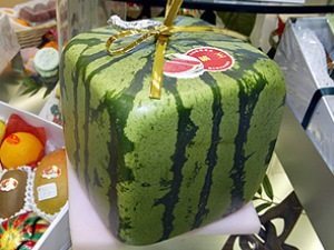 Японцы любят экспериментировать с бахчевыми культурами. В некоторых хозяйствах, например, им придают кубическую или пирамидальную форму для удобства транспортировки, для чего в определенный период созревания ягоды, помещают ее в стеклянную колбу.