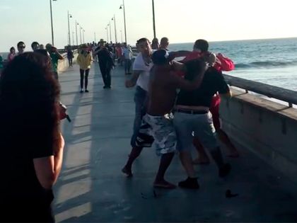 Дальнейшие события снял на камеру сотового телефона очевидец. Агрессивные отдыхающие кавказского происхождения задирали спасателей и предлагали им спуститься с вышки для "разборки". В конце концов один из спасателей поддался уговорам и слез по лестнице, прихватив с собой оружие в виде спасательной доски.