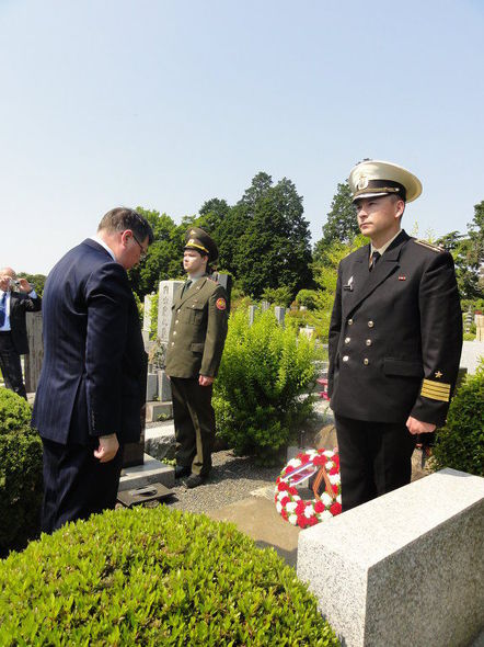 «У могилы Зорге мы отдаем также дань уважения всем тем, кто приложил силы и положил жизнь свою для нашей великой Победы. Завтра — 70 лет Победы. Память о войне для нас священна», — сказал в краткой речи посол России в Японии Евгений Афанасьев.