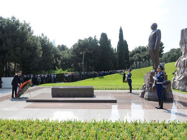 Как передает AZE.az, глава государства возложил венок к могиле Гейдара Алиева, почтил его память. Затем прозвучал гимн Азербайджанской Республики.